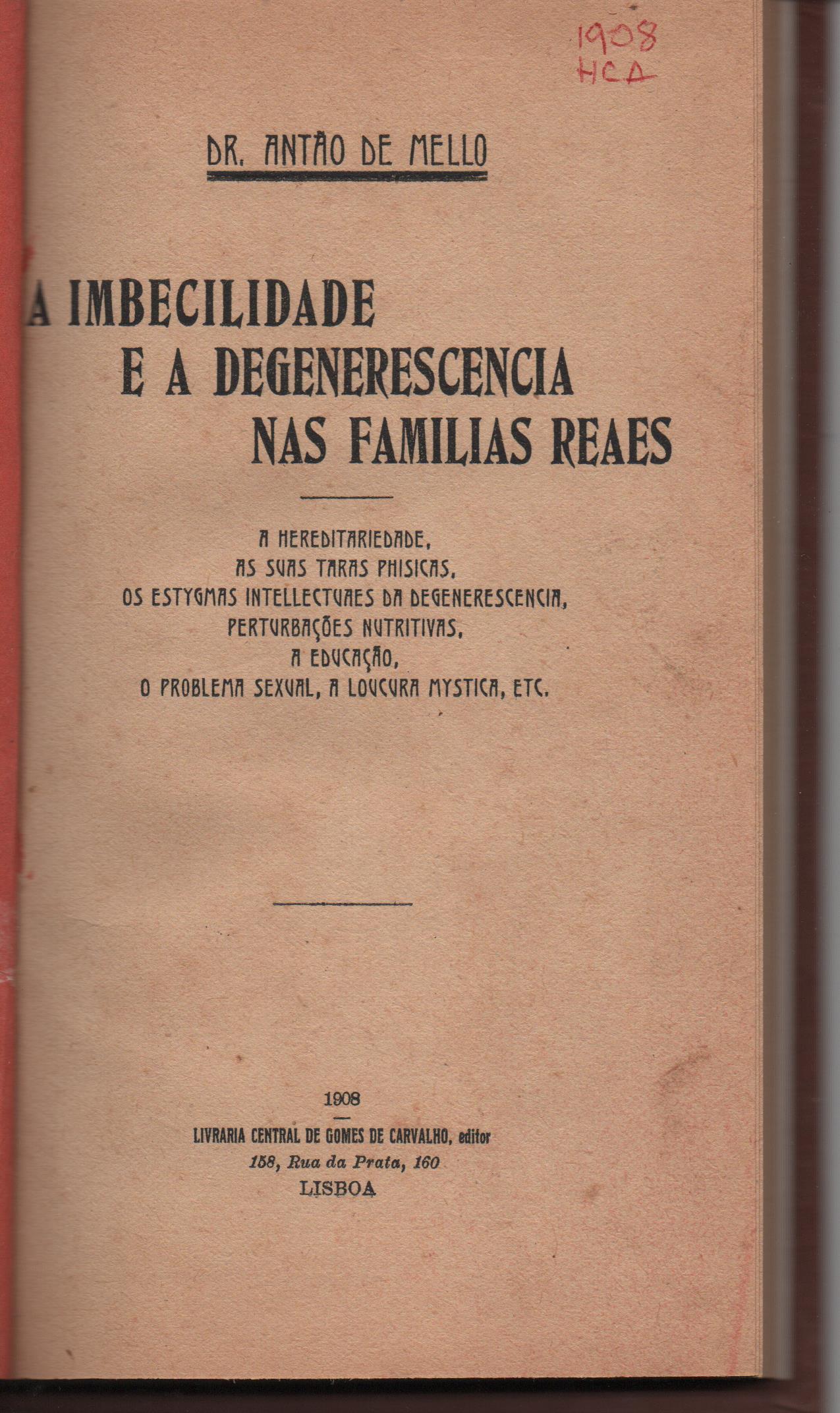 A IMBECILIDADE E A DEGENERESCENCIA NAS FAMILIAS REAES * Dr. Antão de Mello 1908