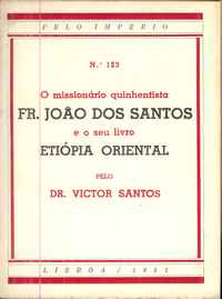 O missionário quinhentista Fr. Jo;o dos Santos e o seu livro Etiópia Oriental Vitor Santos PUBLICAÇ;O: Lisboa : Ministério das Colónias, 1951DESCR. FiSICA: 60, [1] p. ; 20 cmCOLECÇ;O: Pelo Império 123