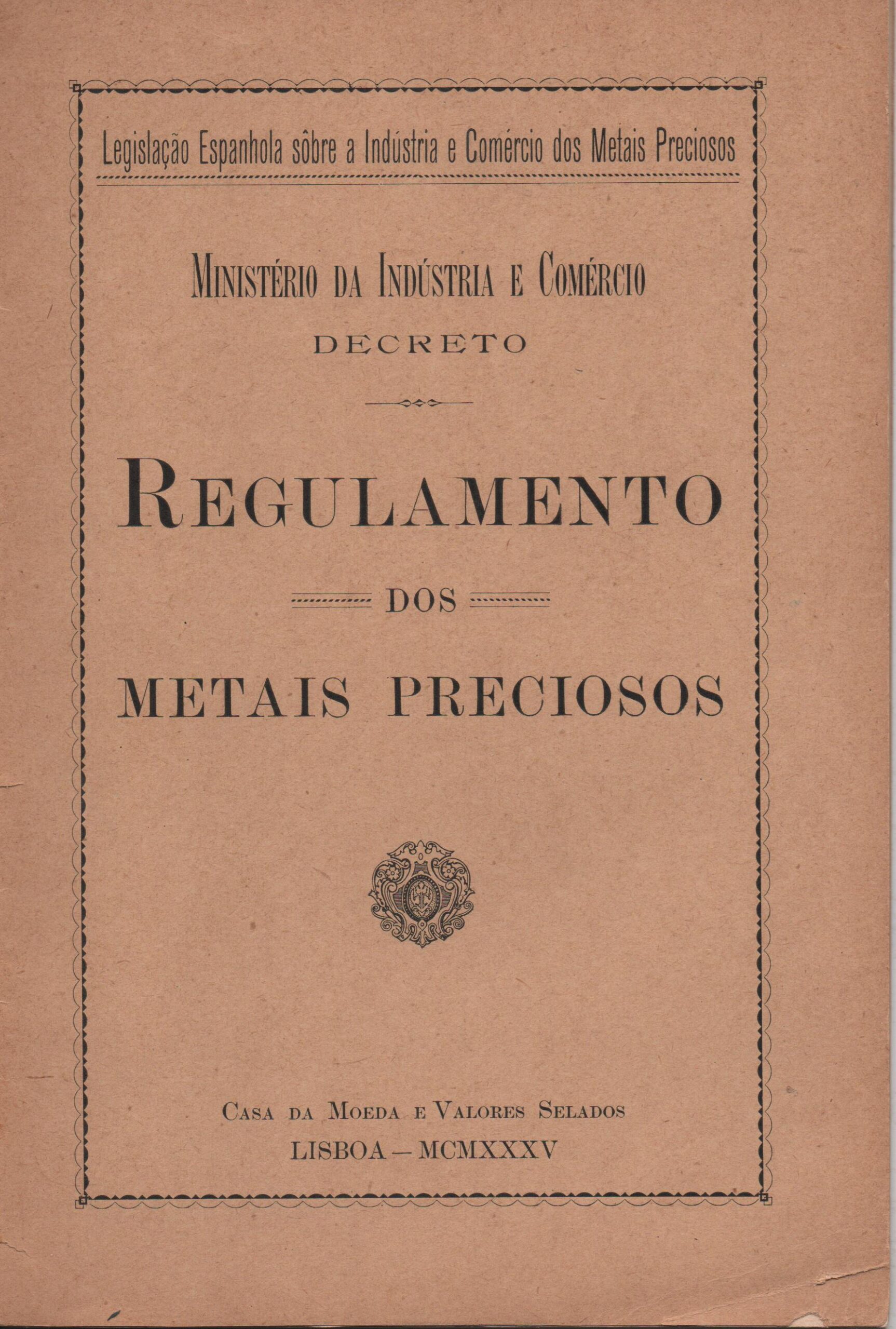 REGULAMENTO DOS METAIS PRECIOSOS : Decreto – Ministério da Indústria e Comércio – MCMXXXV